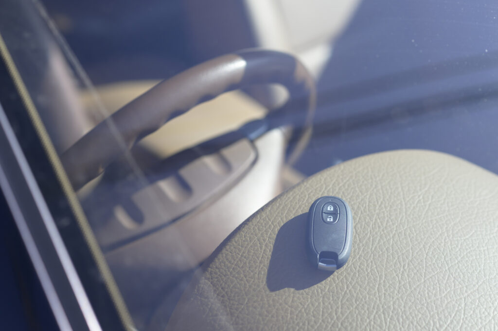 最近の車は、カギ穴に挿すタイプではなく「スマートキー」が主流です。この場合、「カギをつけたまま」が物理的にできません。 スマートキー車の場合は、以下の対応をしましょう。